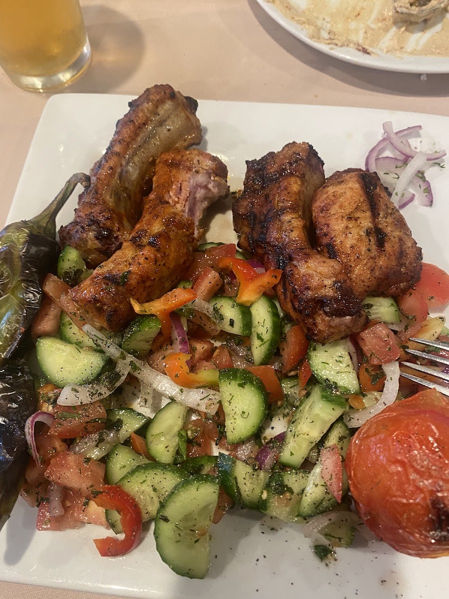 One of the standout dishes at Golden Skewer is the Greek Salad, a vibrant mix of fresh vegetables, feta cheese, and olives, tossed in a tangy dressing that captures the essence of Mediterranean cuisine. Another crowd favorite is the Armenian Salad, featuring crisp greens and flavorful seasonings that perfectly complement any meal. For those craving a heartier option, the Pork Chop Entree is a must-try-juicy, tender, and grilled to perfection.